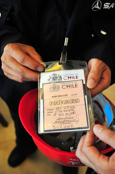 郝恒展示在智利救援的工作證,全亞洲唯一一張