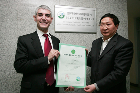 西麥斯公司中國環(huán)境標(biāo)志證書由國家環(huán)境保護(hù)部中環(huán)聯(lián)合(北京)認(rèn)證中心有限公司頒發(fā),出席頒發(fā)儀式的西麥斯代表有西麥斯亞洲區(qū)總裁Jaime Ruiz de Haro以及西麥斯中國混凝土總裁劉效鋒先生。