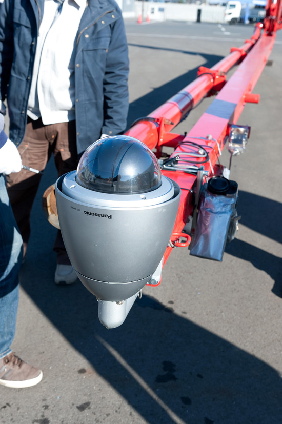 據悉,根據福島核電站的具體工況,工作人員在模擬打水測試中為泵車臂架末端加裝了口徑較小的噴水管,從而使泵車臂長加長至67米,提高了噴口壓力和噴射距離。泵車上還安裝上360度的攝像機,在泵車作業時,可隨時看到燃料池的情況。此外,更為重要的是,泵車上還安裝了溫度測量儀,工作人員可以隨時測量核輻射濃度。