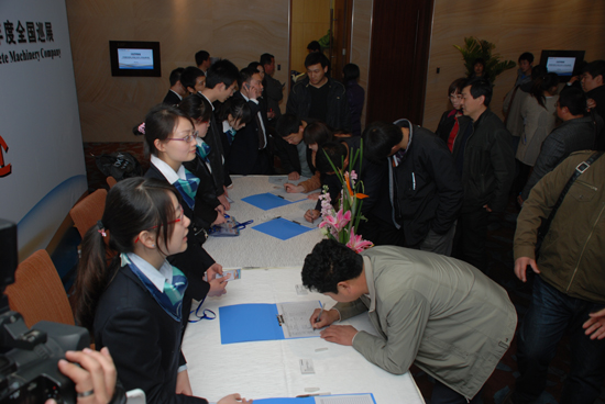 四月,美麗的海濱城市——青島,晴空萬里、海風怡人,在青島海爾洲際酒店,中聯重科為客戶們上演了一場科技的盛宴,國內頂尖創新技術AR現場演繹、ZOOMLION-CIFA復合技術、“藍色關愛”服務品牌的推出,吸引著每一位客戶,令人嘖嘖稱贊。宴會廳演出結束后,5臺電瓶游覽車穿梭于酒店與奧帆中心之間,中聯重科2011年新推出的新品車輛,在奧運會帆船舉辦地—奧帆中心期待客戶來臨參觀,而在享受一場科技盛宴后,領略一下青島的海域風情,不失為茶余飯后的一份美味甜點。在奧帆中心展場,六臺貼有中國祥龍的ZOOMLION-CIFA復合技術的中聯新品泵車展臂高空,氣勢恢弘,兩臺貼有青花文案的攪拌車極具中國特色,耀眼奪目,無不向世人宣告:“中國工程機械的科技制造已經站在了世界的顛峰”。