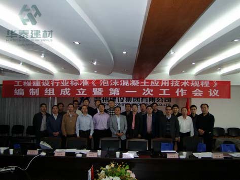 2011年4月15-16日,《泡沫混凝土應(yīng)用技術(shù)規(guī)程》編制組成立暨第一次工作會議在美麗的鹿城浙江溫州召開,會議由中國建筑科學(xué)研究院主辦。來自全國十幾家建筑節(jié)能、墻體材料、泡沫混凝土生產(chǎn)企業(yè)和相關(guān)設(shè)備制造廠家以及同行的代表參加了本次會議。華泰公司作為編制組主要成員受邀參加了此次會議,公司董事總經(jīng)理華貞貴代表公司出席了會議。