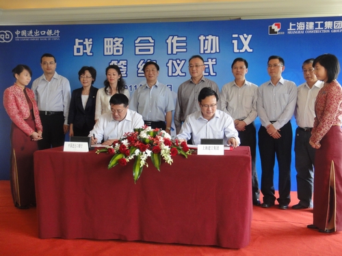 6月8日,上海建工集團與中國進出口銀行簽署戰略合作協議。中國進出口銀行總行副行長朱鴻杰,開發與創新部總經理助理林罡,交通運輸融資部總經理李蒞,優惠貸款部副總經理龔輝宏,進出口行上海分行行長任生俊,副行長俞國壯,副行長鄭麗以及相關部門負責人等;上海建工集團董事長、總裁徐征,副總裁童繼生,總會計師劉國林以及相關部門負責人等出席簽約議式。