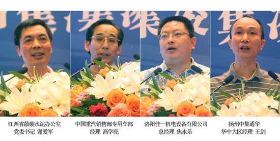 中集凌宇銷售公司總經(jīng)理胡柏林、中國重汽銷售部副總經(jīng)理郭芳、洛陽佳一機(jī)電設(shè)備有限公司總經(jīng)理焦永樂、揚(yáng)州中集通華專用車有限公司翦向仲等四位會議組織方的領(lǐng)導(dǎo)及江西省散裝水泥辦公室黨委書記謝愛軍、南昌市散裝辦主任王仲良等行業(yè)領(lǐng)導(dǎo)出席了此次會議,來自江西各地市的200多名混凝土行業(yè)人士也參加了會議。