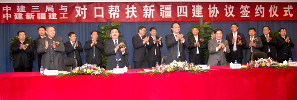 為履行中央企業(yè)的政治責(zé)任,建設(shè)邊疆,發(fā)展中建,在總公司的指導(dǎo)下,經(jīng)我局與新疆建工(集團(tuán))友好協(xié)商,決定以“發(fā)揮雙方優(yōu)勢(shì)、著力共同開發(fā)市場(chǎng)、追求企業(yè)持續(xù)發(fā)展”為目標(biāo),由我局展開為期3年(2012-2014)的對(duì)口幫扶新疆四建工作。