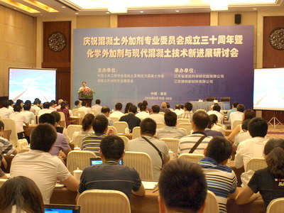 6月19日,由中國土木工程學會混凝土與預應力分會混凝土外加劑專業委員會主辦,江蘇省建筑科學研究院有限公司和我公司共同承辦的混凝土外加劑專業委員會成立三十周年暨化學外加劑與現代混凝土技術新進展研討會在南京隆重召開。來自全國各地科研院所、企事業單位代表100余人參加了會議。公司董事長繆昌文院士出席開幕式并致辭。