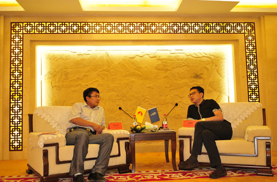 親切交談(左為中聯水泥山東區混凝土中心總經理韓正琦、右為益達董事長王湘輝)