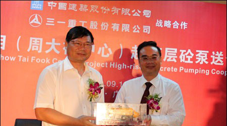 三一重工與中建曾在上海環球金融中心、天津117大廈、歐洲第一高樓俄羅斯聯邦大廈等多個重大工程項目建設上均有過良好的合作,此次參與建設廣州第一高樓東塔,并成為唯一的泵送設備供應商,充分顯示了兩個行業龍頭企業加強合作共贏的愿景,必將有力地推動雙方的戰略合作關系。廣州東塔業主——周大福珠寶金行有限公司表示,中國建筑股份有限公司與三一重工股份有限公司簽訂協議,強強聯合,意義重大,希望能將中國建筑股份有限公司最精良的施工與三一重工的最專業的設備完美融合,共同將東塔打造成為一座精美絕倫的藝術品。