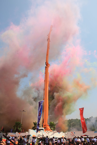 據了解,當日發布的7橋7節臂101米泵車和D1250-80塔機雙雙斬獲兩項吉尼斯世界紀錄,分別為全球最長臂架泵車,以及世界上工作幅度最長的塔式起重機,而另一個新下線的ZACB01起重機則是目前全球最大的輪式起重機。這三款產品的下線,標志著中聯重科再次成功登上全球工程機械制造行業研發制造的巔峰,開創了全球工程機械制造行業技術發展史上新的里程碑,并進一步鞏固了中聯重科全球第一大混凝土機械制造商以及起重機制造商的地位。