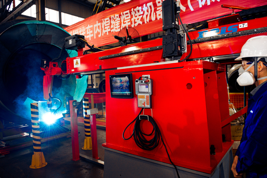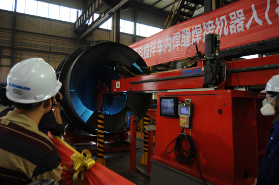 攪拌筒葉片內焊縫焊接機器人的使用,宣告了這一關鍵技術工序智能化、人性化的實現,表明中聯重科攪拌車自動化生產程度已經達到全球領先水平。與此同時,這一技術把工人從惡劣的勞動環境中解放出來,更彰顯了中聯重科作為一家具有社會責任的企業對人的關懷。