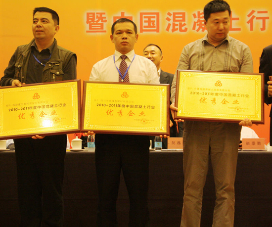 為推動混凝土行業卓越企業家隊伍建設,塑造“誠信、綠色、科學、奉獻”的行業風尚,引領我國混凝土行業持續健康發展,構建綠色低碳的混凝土行業, 2012年10月21日~24日在重慶市召開2012年中國混凝土年會暨2010~2011年度中國混凝土行業優秀企業、優秀企業家表彰大會。會上建材公司榮獲2010-2011年度中國混凝土行業優秀企業,建材公司副總經理劉華東榮獲2010-2011混凝土土行業優秀企業家。
