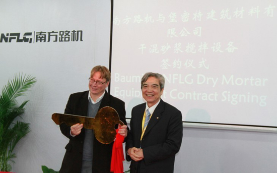方慶熙董事長(zhǎng)發(fā)表講話,“能與堡密特建筑材料(蘇州)有限公司合作非常榮幸,南方路機(jī)與堡密特都是一樣實(shí)事求是的,能與之合作是非常寶貴的機(jī)會(huì),又將是南方路機(jī)一次學(xué)習(xí)和提升的機(jī)會(huì)?!?/P>