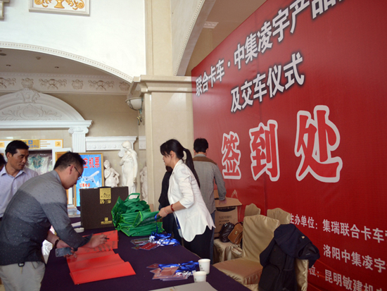 5月12日,春城昆明,一排色澤艷麗、氣勢非凡的混凝土攪拌車整齊的停放在云安會都酒店的廣場上,聯合卡車與中集凌宇20臺LNG攪拌車交車儀式及產品推介會在這里舉辦。集瑞聯合卡車營銷服務公司副總經理張志國、中集凌宇營銷公司市場部部長常國強出席了此次活動,來自昆明及周邊地區混凝土及相關行業人士70余人參加了此次會議,共同見證了昆明混凝土行業首批LNG攪拌車的交付。中集凌宇粉罐車10年來馳騁云南,市場第一品牌的地位不可撼動,但攪拌車這么大批量的進入還是第一次!