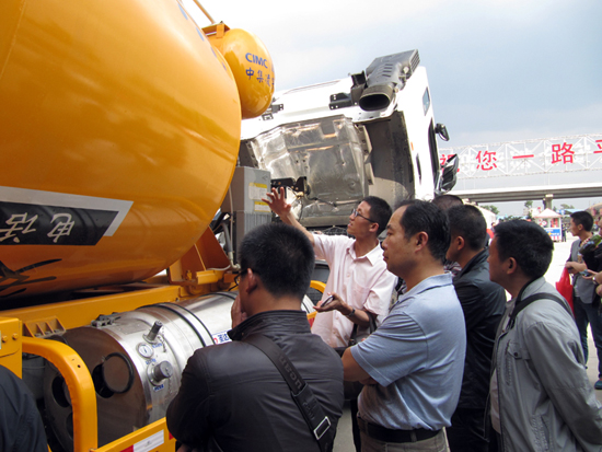 在參觀產品環節,貝站長更是現身說法,主動給身邊的同行們介紹起了中集凌宇的攪拌車,他為選擇了一款物超所值的設備感到由衷的高興。經過會議的講解和樣車的參觀,到場的用戶對聯合卡車和中集凌宇的LNG攪拌車有了更深入的了解。