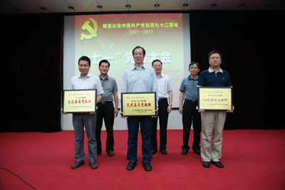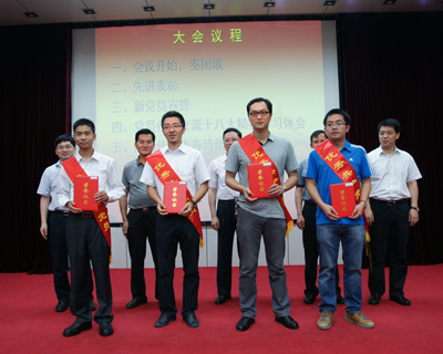 第一黨支部書記劉建忠同志(前排左一)接受表彰