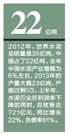 中國建材集團董事長宋志平對市場的形勢再清楚不過,中聯水泥即是建材集團旗下公司。宋志平告訴記者,2012年,世界水泥總銷量是35億噸,中國占了22億噸,今年的產量大概是23億噸,過剩產能達到1/3,開工率嚴重不足。