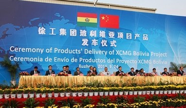 9月24日下午,位于徐州經濟技術開發區的徐工集團生產基地工程機械方陣成列,嘉賓云集,彩帶飄舞,一派節日的喜慶氣象。徐工——玻利維亞項目197臺工程機械產品發車儀式在此隆重舉行。這批設備包含了汽車起重機、壓路機、裝載機、履帶起重機、混凝土泵車、平地機、挖掘機、挖掘裝載機等系列成套產品,項目總金額超過2000萬美元,是今年繼徐工——委內瑞拉工程機械第一大單之后,徐工在南美市場的又一重大突破。