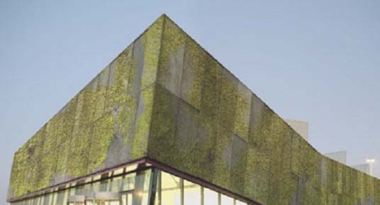 外墻上種植藤本植物這在城市建筑中被廣泛使用,但位于西班牙巴塞羅那的加泰羅尼亞理工大學的研究人員目前正在研制一種新型“生物混凝土”,這種新型混凝土可以捕捉降雨并使混凝土外墻生長苔蘚和真菌,使建筑物更大意義上的貼近環保。