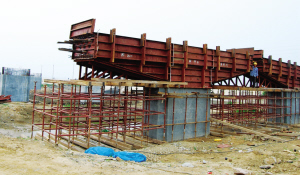 陳家貢灣跨海特大橋為聯孔式,位于膠南瑯琊陳家貢灣,東接瑯琊鎮,西至泊里鎮。大橋全長1820米,按四車道設計,總寬度24.5米,設計使用年限100年。該橋預計明年10月竣工,將使瑯琊臺與泊里鎮距離縮短10公里。