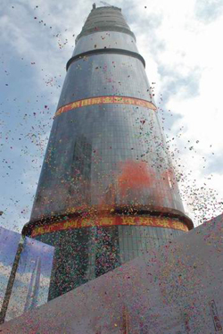 11個月后,廣州西塔即將竣工。屆時(shí),一座世界一流的建筑精品、一座國際知名的摩天大廈將以其完美的形象高高聳立在中國的南粵大地,從而成為中國建筑史上的又一座豐碑。