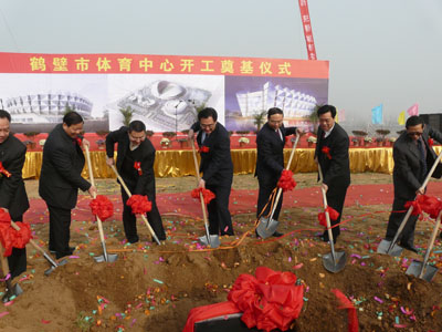當(dāng)鶴壁市委書記郭迎光宣布:“鶴壁市體育中心建設(shè)開工”時(shí),禮炮齊鳴,彩花紛飛。