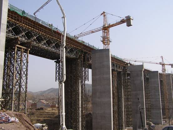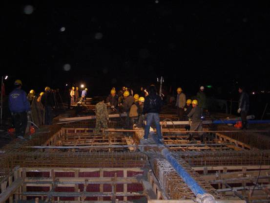 中國(guó)鐵建中鐵十五局集團(tuán)華北指京承項(xiàng)目部承建的京承高速湯河大橋,全長(zhǎng)471米,共八聯(lián)12垮,單箱雙室預(yù)應(yīng)力砼現(xiàn)澆梁。該大橋墩高、垮度大、技術(shù)含量高是業(yè)主控制工期的重、難點(diǎn)工程。經(jīng)過全體員工二天二夜晝夜施工,于2009年3月18日順利完成第4聯(lián)右幅首件箱梁澆筑任務(wù)。為確保業(yè)主總工期目標(biāo)奠定了基礎(chǔ)。