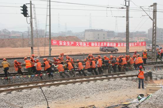 因此,東孚鋪軌基地建場時間緊、任務重。3月19日,為了盡快打開基地路料運輸通道,加快基地建設進度。新運工成公司黨委副書記、紀委書記、福廈廈深鋪軌項目部項目經理鄭樹祥,親自擔任撥接施工總指揮,精心組織施工,確保既有現撥接安全正點。上午11:12時,慢行命令下達, 15:15時,廈門至景德鎮的客車徐徐通過。中鐵一局參建員工在3個小時內成功插入2組道岔,在營業線撥接施工并能安全正點開通線路,打開進料通道。得到南昌鐵路局工務、電務等配合單位的一致好評。