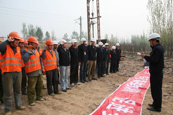 工區(qū)經(jīng)理陳建強(qiáng)開鉆前帶領(lǐng)員工安全宣誓