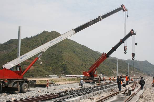 但是,以上五個車站施工負責人根據各自施工特點,積極組織臨時道岔拆除,高速道岔鋪設創造條件。五個車站共投入勞動力500余人,大家采用人扛、肩挑、吊車配合、道岔換鋪機換鋪,日夜不停施工。時值四月份,閩東沿海氣候變幻無常,太陽出來氣溫高達二十七八度,陰雨天氣則十幾度,全體參建人員為了既定目標的實現,好多人臉上都曬破皮,加上連續幾天幾夜工地搶工不能休息,大家疲憊不堪,但是所有管理人員沒有任何怨言,仍奔赴在各自崗位,把好安全質量關,確保工期進度。集團公司總工程師樊恒秀不顧體弱多病,協同新運公司副總經理王新年每日從寧德搶工指揮部出發,一個車站一個車站蹲點盯控,統一協調人員、設備、機具,根據各站特點及時優化施工組織。晚上一般都在22點以后回到指揮部,還要召開交班會,總結當天工作,安排第二天生產,經常到夜里十二點以后才能休息。