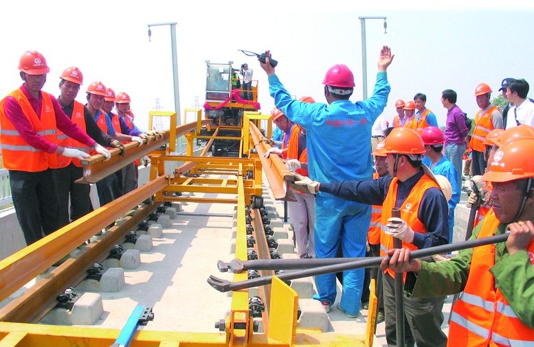 5月5日中午12時左右,在鄭西客運專線臨潼北站起點,隨著中鐵一局鋪軌機組的牽引,兩條長達500米的鋼軌緩緩落在雙塊式軌枕上,鄭西客運專線我省境內成功鋪設第一軌,同時,也標志著鄭西客專西段鋪軌正式拉開帷幕。據鄭西客專公司副總經理栗恒滿介紹,預計6月10日,全線的無砟軌道就可鋪設完畢,8月1日,將進行安裝調試,11月1日開始試運行,12月28日,全線就可正式通車。