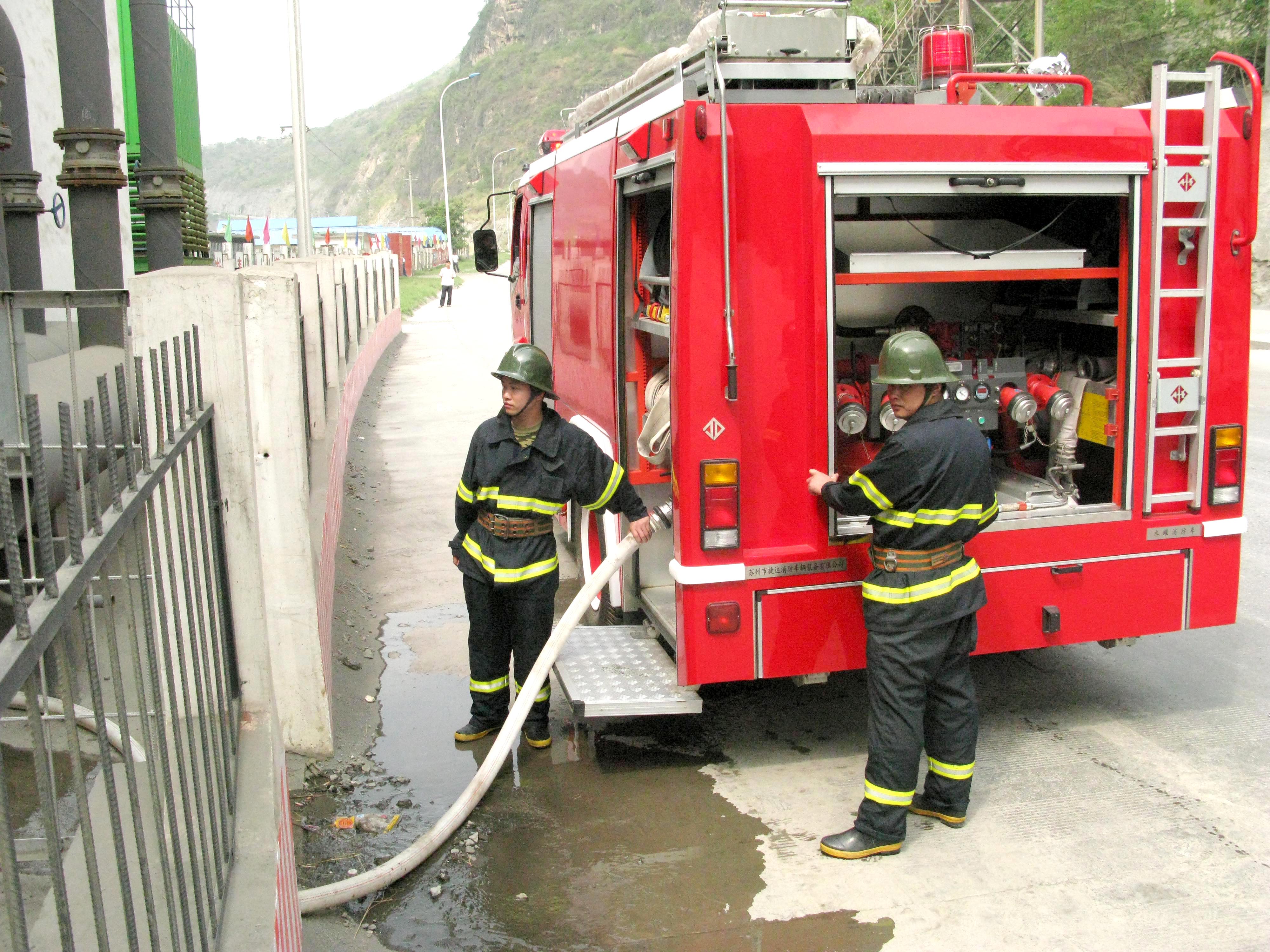 消防車(chē)在演練現(xiàn)場(chǎng)發(fā)揮重要作用