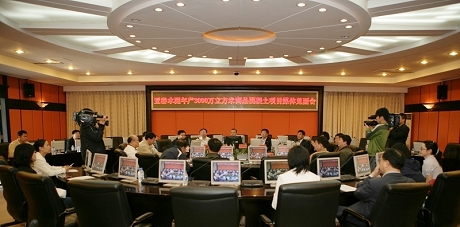 亞泰集團董事長、總裁宋尚龍向各大媒體介紹亞泰水泥年產3000萬方商品混凝土項目