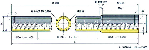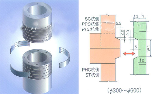 為了發揮管樁的最大的抗彎性能,現在日本用組合管樁也比較普遍,所以鋼管混凝土管樁SC也普遍的應用。因為將鋼板代替了鋼筋放在最外面,從結構上是最合理,抗彎性能最好。(見圖)