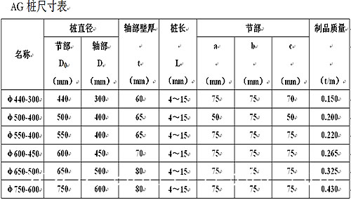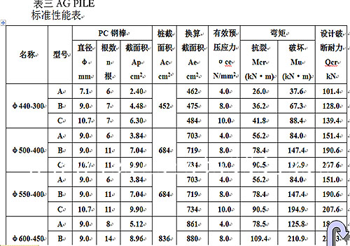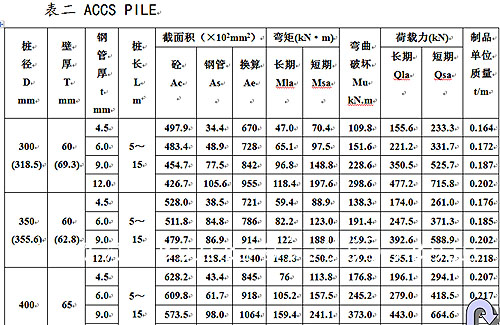 鋼管混凝土管樁規格性能(見表二)