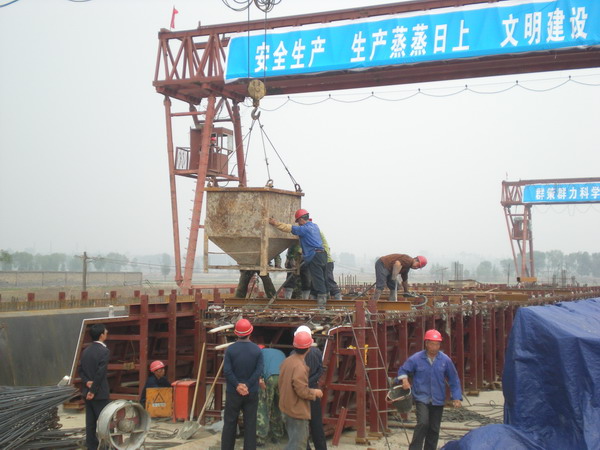 5月16日18:00時,經現場工人4個多小時的辛勤奮戰,中國鐵建中鐵十五局集團七公司承建的忻阜高速第四合同段滹沱河大橋首片預制箱梁在滹沱河梁場成功澆筑。