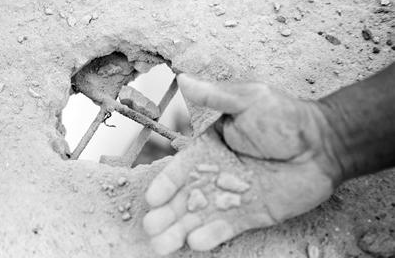 隨后來到515號樓201室,也就是老程的家。仔細檢查了樓面窟窿邊的材料后,夏主任說,可以肯定的是,樓面建筑材料內(nèi)混凝土的強度不夠。