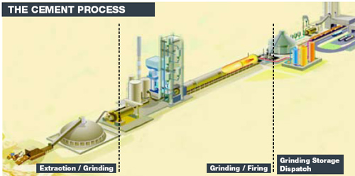 接下來的處理是在水泥碾磨機。石膏及其他補充材料(如高爐礦渣,粉煤灰,石灰石等)被添加到爐渣中。所有的成分都被很好的經過均質處理最后才得以形成水泥。