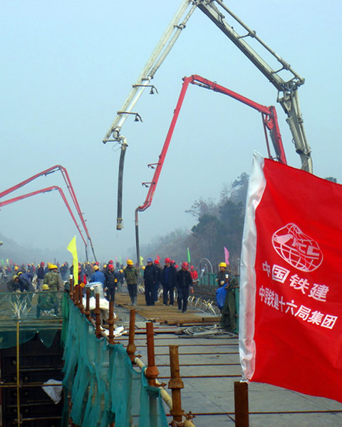 12月9日23時10分,石武客專高場特大橋連續梁,通過中鐵十六局集團公司石武客專二分部全體員工15小時的連續艱苦奮戰,順利澆筑成功。
