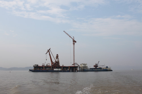 象山港大橋北主塔群樁基礎(chǔ)灌注樁共有41根,第一根基礎(chǔ)灌注樁于2009年10月24日澆筑,最后一根38#樁灌注樁于2010年1月30日21時許澆筑,歷時三個月。施工中,中交二公局針對大橋設(shè)計特點,先后攻克了北主塔深水鋼護筒插打和鉆孔平臺搭建,取得了多個階段性勝利,高速、安全、優(yōu)質(zhì)地完成了41根超長大口徑變截面樁基任務(wù),創(chuàng)下了國內(nèi)超長、大口徑變截面樁基施工紀錄,為大橋建設(shè)整體推進打下了堅實基礎(chǔ)。
