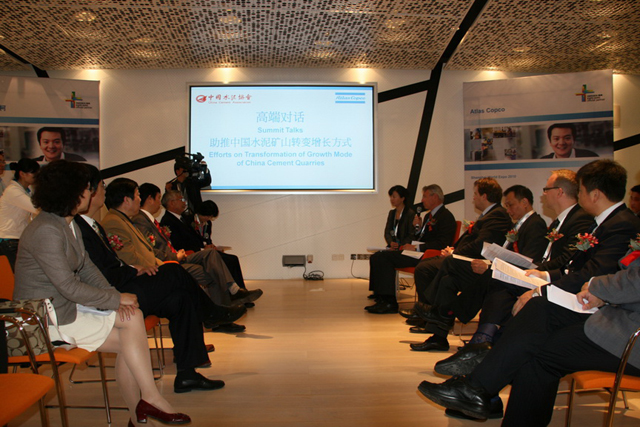 5月9日,中國水泥協(xié)會會長雷前治、秘書長孔祥忠在上海世博園瑞典館與阿特拉斯·科普柯公司全球高級副總裁Bjorn Rosengren、露天鑿巖設備部總裁Andreas Malmberg進行了親切友好的交流。