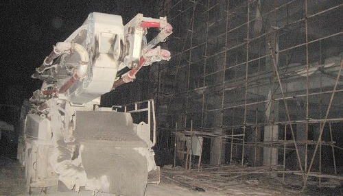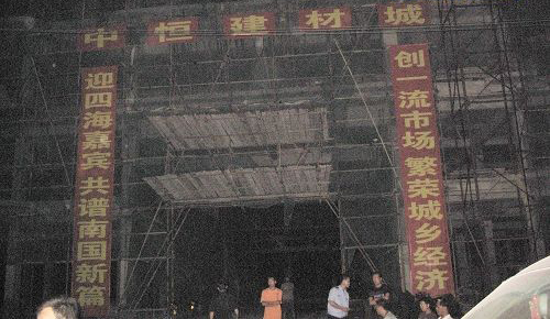 當晚凌晨,記者在施工現場看到,中恒建材城正在利用深夜進行搶建,該房屋已蓋至第五層,一輛車牌號為瓊B05696的水泥輸送車,正在向名為中恒建材城的違法建筑項目輸送混凝土,工地工人正在用手動攪拌機對已經抽送上來的混凝土進行加工,轟隆隆的機器聲及工人施工的噪音讓周圍的居民怨聲載道。