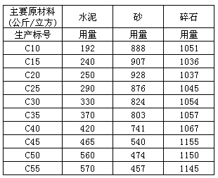生產標號配比:見表格(以42.5號水泥為例)
