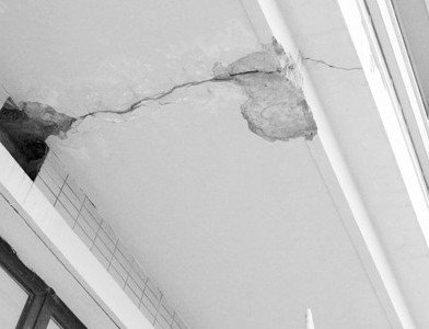 “不會是房子的質量有問題吧?”接連兩次調整大門的尺寸,公司相關負責人意識到情況不對,開始懷疑房子的質量問題。田經理說,他們這么想并不是無的放矢,因為這幾年,他們發現樓內出現很多裂縫,墻壁、地板、天棚都有,前前后后出現的裂縫有20幾條,而且有些竟然是貫穿性的。此外,軟件樓內的漏水現象也特別嚴重,“陰雨天,很多地方都往里面浸水。 ”