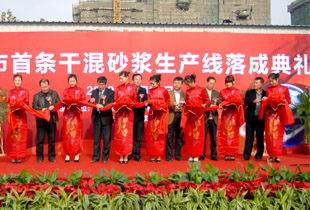 中國散裝水泥推廣發展協會丁建一理事長、中國建筑材料檢驗認證中心李運北總工程師、煙臺市經信委姜明副主任、煙臺市住建局林濤副局長、全國益生宜居干混砂漿產業聯盟俞錫賢總經理、煙臺市益生宜居砂漿科技有限公司呂杰總經理等有關領導出席落成典禮并致辭,建設、施工、質檢及行業企業代表,煙臺市各主要新聞媒體等參加了落成典禮活動。