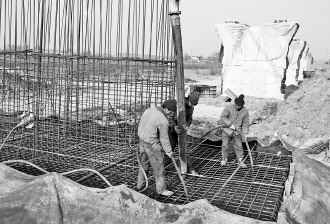 1月15日,大西高速鐵路客運(yùn)專線的建設(shè)者們,冒著嚴(yán)寒在鹽湖區(qū)王范段澆筑混凝土橋墩。