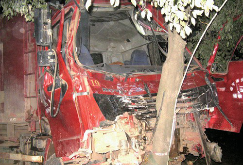 目擊者劉先生介紹說,當晚10時許,攪拌車從民族大道拐上鳳嶺路前行,在下坡經過鳳嶺白云路口時,一輛泥頭車從白云路東端高速駛來,猛地撞到攪拌車右側后輪上,導致混凝土攪拌大滾筒與車身脫節,朝前翻滾,并撞上一輛從對面駛來的藍色小汽車。而那輛泥頭車撞上攪拌車后,繼續朝前猛沖,撞上鳳嶺路人行道的一棵大樹后才停下來。泥頭車司機被撞受傷,之前被救護車拉走的那個男子就是泥頭車司機。