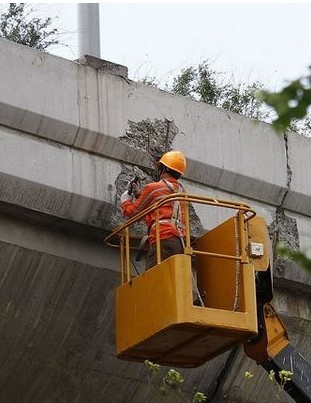 這條道路的養(yǎng)護單位為上海成基市政建設發(fā)展有限公司,新民網(wǎng)記者在現(xiàn)場看見,他們已經(jīng)派工人在現(xiàn)場進行維修,將出現(xiàn)裂縫的水泥鑿開,清潔掉落在地面的水泥塊,再進行養(yǎng)護,至于為何會發(fā)生脫落尚不清楚原因,工作人員推測可能是天氣炎熱,造成水泥塊干裂。據(jù)了解,水泥塊脫落情況并不嚴重,也并未影響到橋的主體結(jié)構(gòu),高架道路通行未能受到影響。