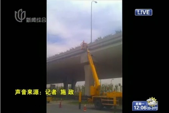 5月9日,上海虹翟高架防撞墻外側(cè)混凝土發(fā)生脫落,白色的水泥塊掉落在綠化帶上,脫落的面積約1平方米。