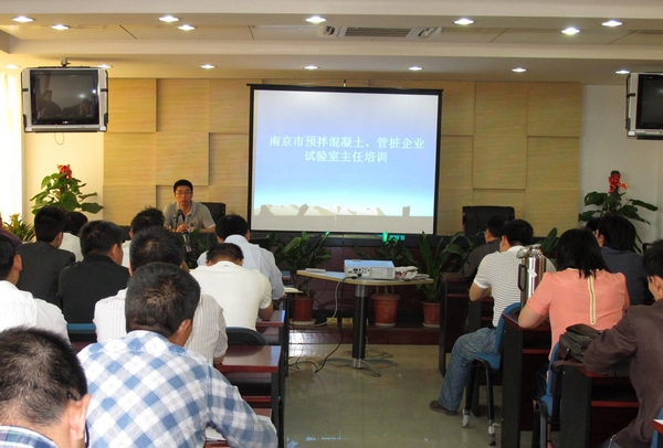 2011年5月14日南京市預拌混凝土、混凝土管樁企業試驗室主任培訓班在南京市建筑安裝工程質量檢測中心順利召開,共計70人參加了此次培訓。本次培訓主要就預拌混凝土綠色生產、如何建立企業質量管理體系、企業生產防錯管理以及聚羧酸外加劑在混凝土中的應用等問題進行了專題講座和交流,并就培訓內容進行了統一考核,取得了較好的效果,受到與會試驗室主任的一致認可和好評。