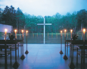 在日本大阪城郊靜謐處,有一座木結構教堂和牧師住宅擴建的獨立小教堂。在黑暗盡頭冰冷堅實的混凝土墻壁上,建筑師鑿出縱橫兩道巨大開口,光線從未知的外界穿透十字架的罅隙闖進來這是著名建筑“光之教堂”,日本著名建筑師安藤忠雄遐邇世界的成名作。