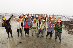 最后一斗混凝土。